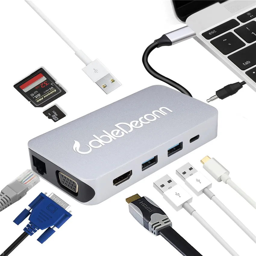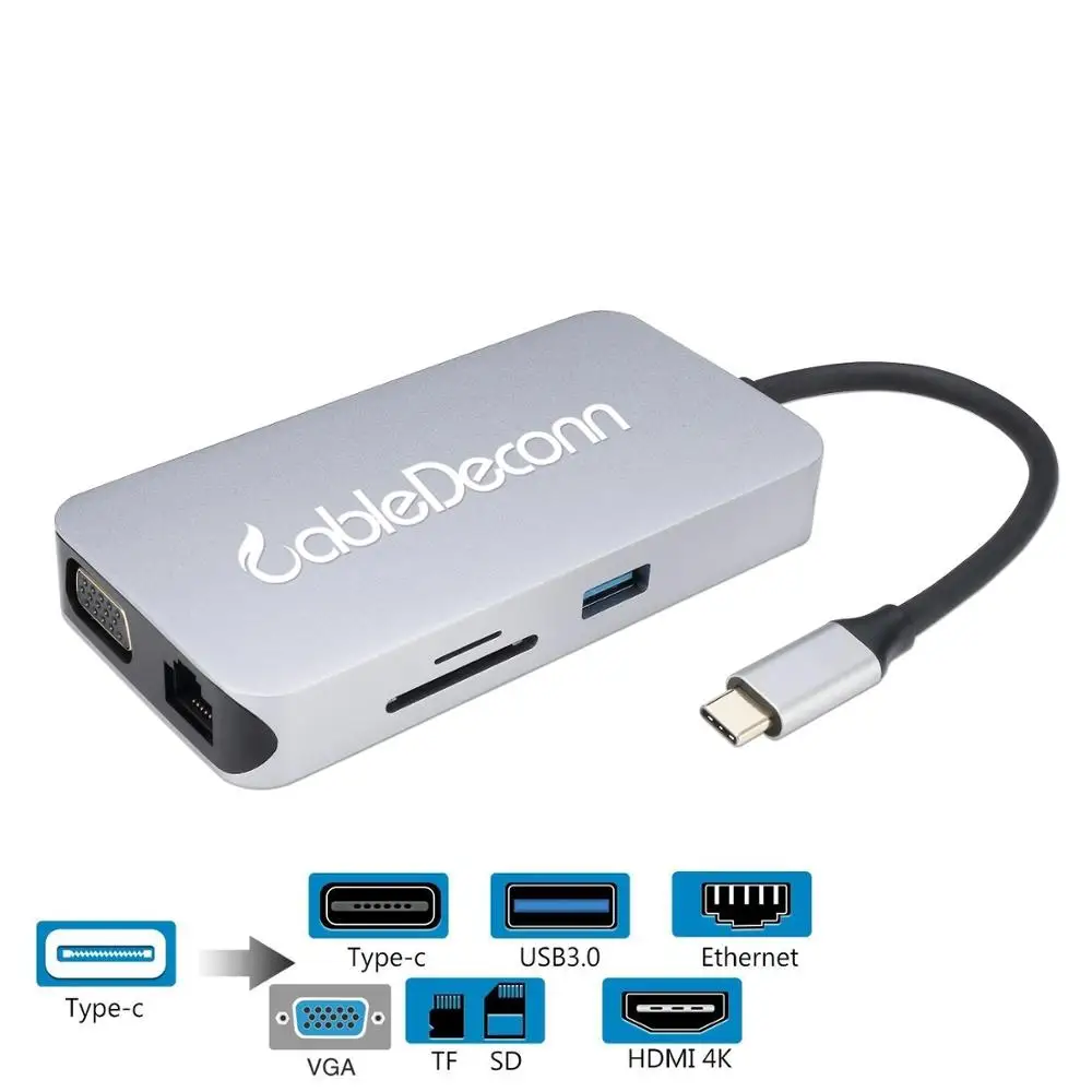 Cheap Chance of USB Type C Hub to HDMI 4K*2K VGA RJ45 TF SD Reader Slot USB C Converter Adapter for MacBook Samsung